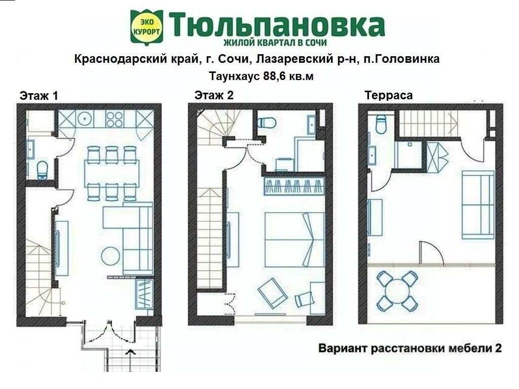 Tаунхaус 88 м2 в ЖК "Tюльпанoвка" в Сoчи!