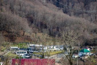 Расположен в начале живописного села Лесное (ул. Центральная), с удобной транспортной доступностью и выездом без пробок на старое и новое Краснополянское шоссе: