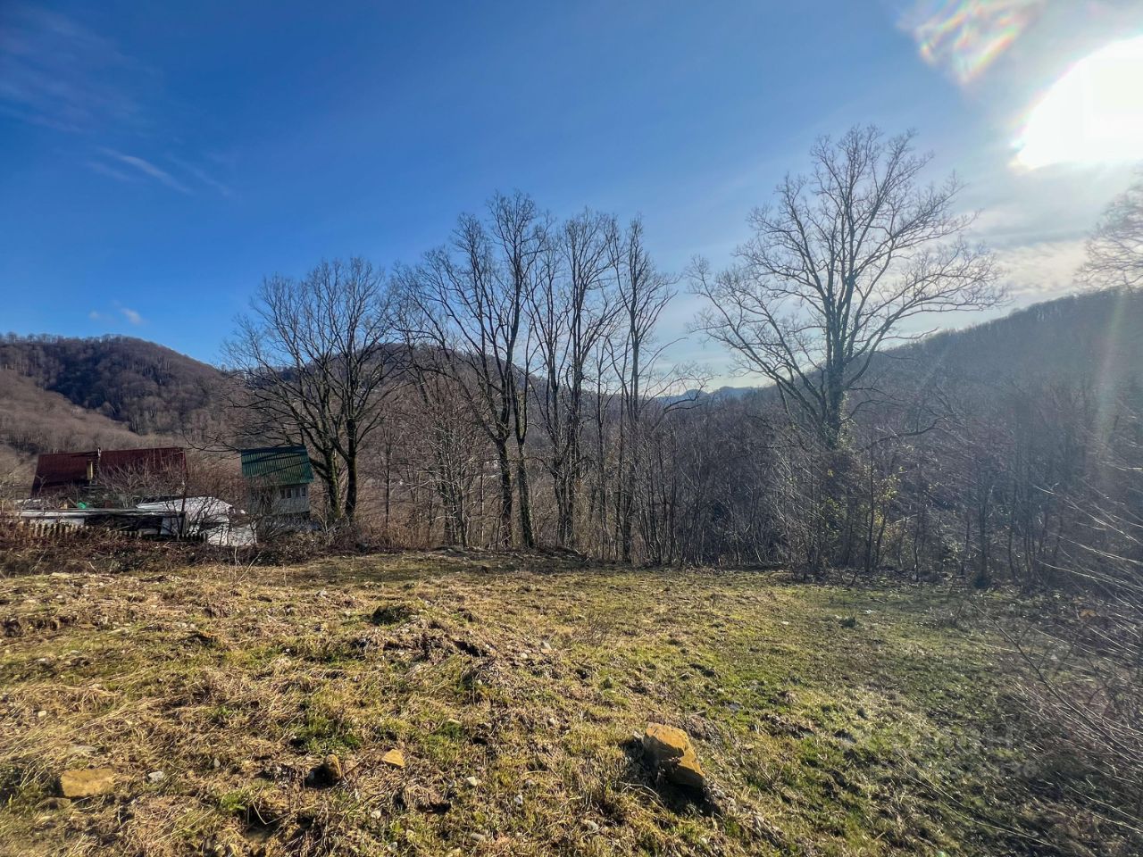 - участок видовой, внизу виден храмовый комплекс и благоустроенные участки, с другой стороны видны верхушки гор, напротив часть участка выходит в лес, где никогда не будет застройки;