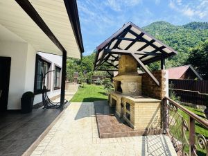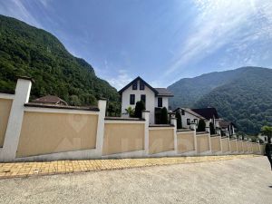 В ущелье Ахцу, которое издавна называют местом силы, на высоте, где воздух становится чистым и звонким, расположился этот эксклюзивный дом. Он стоит на самой верхней точке премиального коттеджного посёлка, откуда открываются захватывающие виды на горные вершины, уходящие в небо. Это место, где время течёт иначе, а каждый рассвет окрашивает пики в золото, даря ощущение, будто вы парите над облаками.