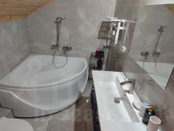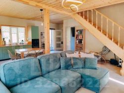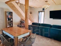 На первом этаже просторная гостиная с современным ремонтом, кухня оборудована всей необходимой дорогостоящей техникой, гостевая комната и санузел, оснащенный душевой кабиной.