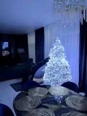 Площадь дома позволяет комфортно разместить большую семью или компанию гостей. Три отдельные спальни с кроватями 160 на 200. Ещё две спальни с раскладными диванами. В каждой комнате — телевизор. Два санузла. Большая кухня-гостиная с полным оснащением: кофемашина, посудомоечная и сушильная машины, духовой шкаф, варочная панель, холодильник, фильтр для воды. Умная колонка, игровая приставка, массажное кресло. Всё продумано для жизни и отдыха.