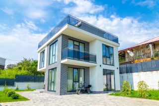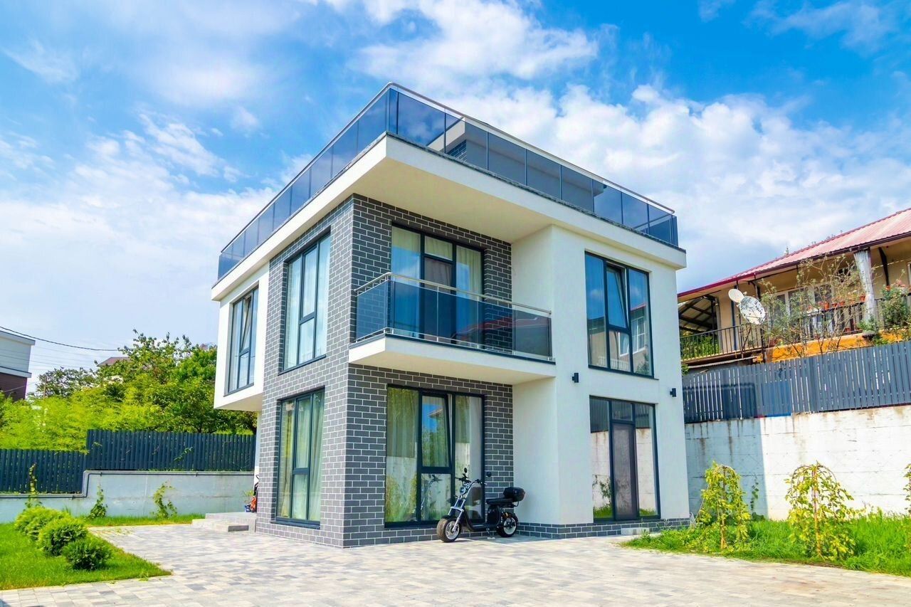 Представьте: вы живёте чуть выше Сириуса, в тихом месте, но при этом до пляжа, аэропорта и вокзала — 15 минут на машине. Утром вы собираете инжир, шелковицу и виноград в собственном саду, днём готовите шашлык в зоне барбекю, вечером поднимаетесь на эксплуатируемую кровлю смотреть на звёзды. Это не просто дом, а пространство, где природа и комфорт живут рядом.