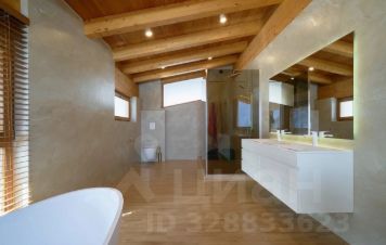 На участке 2 парковочных места под навесом, подогреваемый бассейн и ландшафтное озеленение. Дом построен каскадом, основной вход с парковки сразу на 2 этаж.