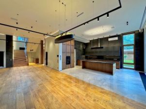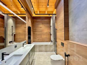 Пятьсот пятьдесят пять метров тщательно спланированного пространства с уникальными интерьерами. Роскошная главная спальня площадью сто квадратов с камином и выходом на террасу, гостиная с точной копией музейного экспоната Врубеля, стеклянные галереи из бронированного триплекса с подогревом. Патинированная медь, титановые элементы и трёхсотлетний дуб создают атмосферу, где время замирает.