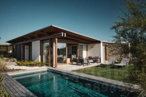 Продаю одноэтажный современный дом в Сочи с бассейном. Одноэтажный — это не про размер, это про удобство. Вам не нужно бегать по лестницам: всё под рукой — спальни, гостиная, кухня, выход к бассейну. Идеально для тех, кто ценит комфорт без лишних движений. А бассейн прямо у террасы — спасает в жару и радует глаз с утра до вечера.