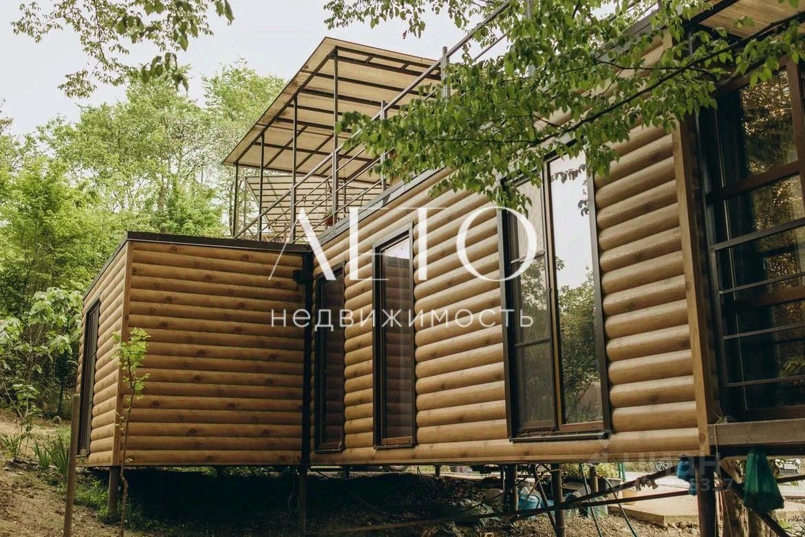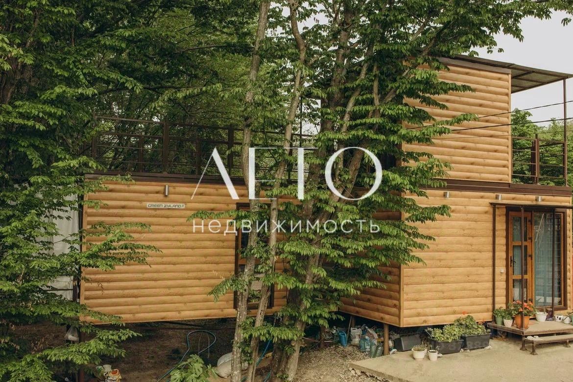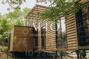 На участке имеется модульный дом в эко-стиле. В доме кухня, 2 отдельные спальни и гостевая комната с выходом на очень просторную террасу.