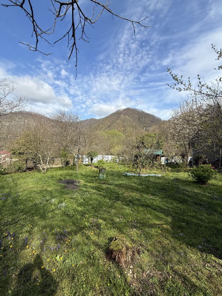 Участок 5 соток, достаточно ровный, уклон минимальный, солнечная сторона с красивым видом на горы — удобно строить. Растут плодовые деревья: хурма, черешня, яблони. Огорожен, удобный заезд.