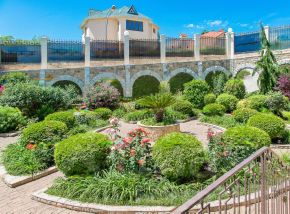 Огромная территория земельного участка - 20 сот. оформлена ландшафтными дизайнерами очень красиво и практично.