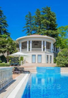 На территории расположен большой Бассейн и Летняя Ротонда с полноценной кухней и мангальной зоной и изумительным видом на морское побережье и парусный клуб!