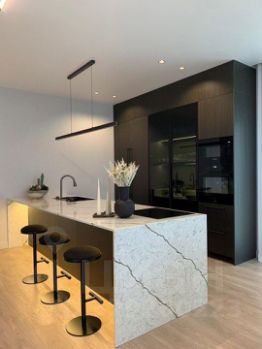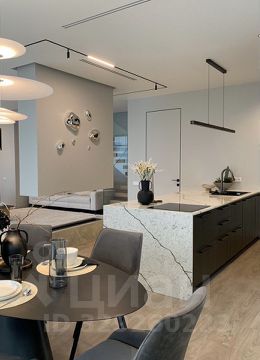 Кухня: два вместительных холодильника с морозилкой, посудомоечная машина, духовка, микроволновая печь, индукционная плита. Кухонные фасады из натурального шпона. Раковина с различными режимами подачи воды, отдельная мойка для стаканов.