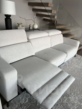 Просторная гостиная с видом на море, телевизор, диваны с реклайнерами, которые с помощью кнопок меняют положение сидения в горизонтальное.