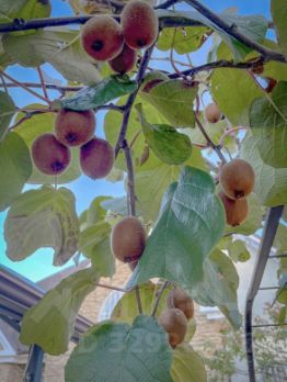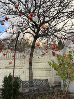 Фруктовый сад: хурма, черешня, яблони, груши, слива, фейхоа, виноград, киви, а ещё малина, ежевика и клубника. Все плодоносят.