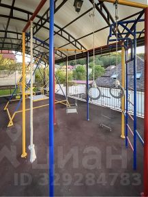 Детская площадка под крышей с качелями и спортивный уголок.