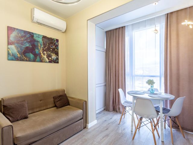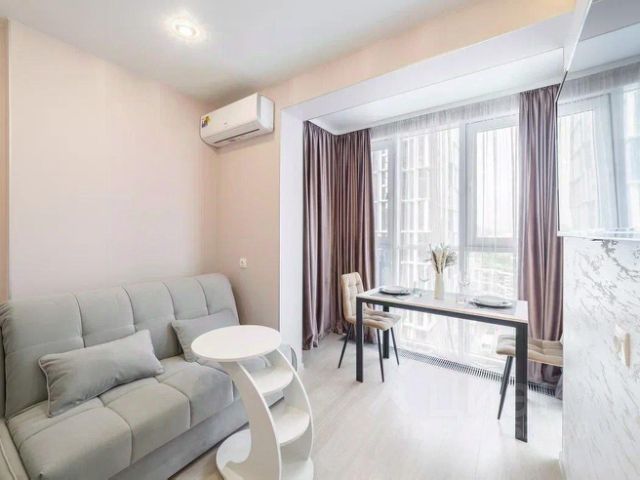 В квартире есть все необходимое для жизни: кондиционер, холодильник, стиральная машина и телевизор. Кухня и комната полностью меблированы. В ванной комнате установлена душевая кабина. Планировка продумана до мелочей, чтобы каждый квадратный метр использовался с максимальной пользой. Дом находится в отличном состоянии, поскольку был построен совсем недавно. Для удобства жильцов предусмотрен лифт. Рядом с домом есть парковка, поэтому можно не беспокоиться о месте для автомобиля. Развитая инфраструктура микрорайона позволяет легко решать повседневные задачи. В шаговой доступности находятся школы, детские сады и магазины. Это делает квартиру идеальным выбором для семей с детьми. Также рядом расположены остановки общественного транспорта, что позволяет быстро добраться в любую точку города.