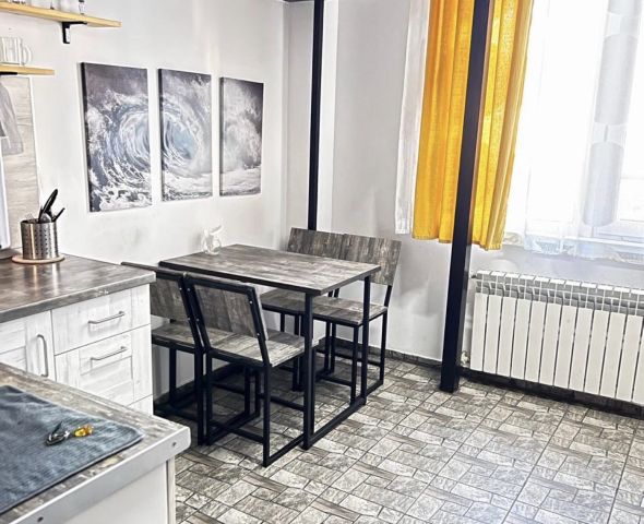Квартира 1но комнатная большой площади квартира с большой кухней-столовой, сейчас их называют евро двушка. Квартира сдаётся с мебелью и техникой, с кухонной утварью в хорошем состоянии. Имеется открытый балкон. В спальне 2спальная кровать 1.6 х 2м, диван, комод, шифоньер, кондиционер. Кухня-столовая большая, кухонный гарнитур, газовая, плита с электродуховкой, обеденный стол, табуретки, диван. Есть вытяжка холодильник, телевизор, интернет. Газовый котёл итальянский, обеспечивает горячей водой и отоплением. Экономия по коммуналке из за автономного газового котла. Район очень обжитой, есть все необходимое: магазины Пятёрочка и Магнит, Красное и белое, овощной, столовая, аптеки, строительно отделочные и др. Автобусной сообщение с центром:автобус 12 и 18, интервал движения 12 мин. Автобусная остановка в 3х мин ходьбы от дома. Недалеко от нас продовольственных ярмарка "На Фабрициуса", где самые низкие цены на продукты питания. Цена аренды в месяц 37000. Плюс обязательные платежи:обслуживание 10000руб., вывоз мусора 260 руб. интернет 350 руб., газ, вода и свет по счётчику. Выгодно, что можно регулировать самим тепло в квартире, уменьшать, увеличивать, включать когда захотите, а не ждать отопительного сезона. За горячую воду тоже не платим, только холодная вода и газ! Прошу обращаться сначала письменно, задавать вопросы, договариваться о времени просмотра. Стараюсь отвечать быстро.