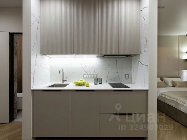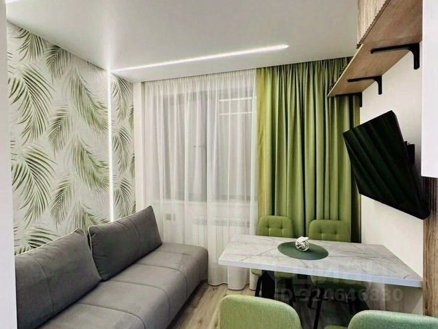 Однокомнатная квартира с балконом на третьем этаже, с видом на зелень.