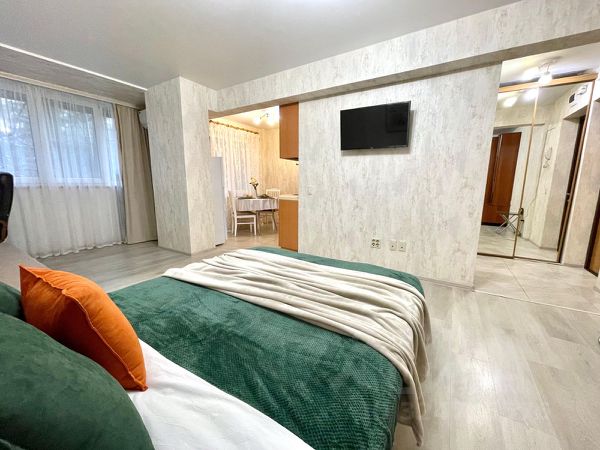 Презентабельный дом на огороженной территории. Парковка. Уютная квартира состоящая из гостиной совмещенной с кухней студийного типа, спальни, совмещенного санузла. На кухне дорогой встроенный гарнитур пол единой столешницей с варочной панелью, 2-х камерный холодильник, 2-х спальный раскладной диван, уютная обеденная группа. В спальне: 2-х спальная кровать с ортопедическим матрасом, большой шкаф, Жк телевизор. Кондиционеры. Подогрев пола. Отличная инфраструктура. В сезон дороже. Сергей