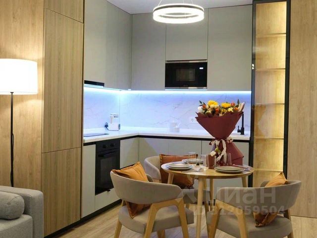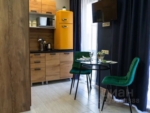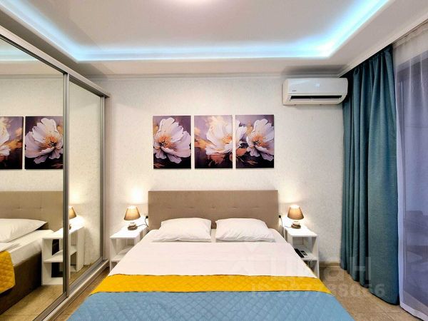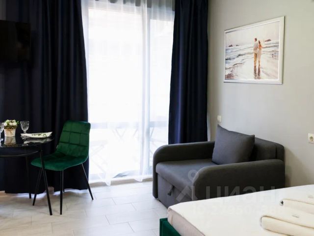 Общая площадь 19 кв.м., с балконом, выходящим во двор. Дом новый, сдан в 2019 году. Косметический ремонт в квартире сделан в мае 2024 года, все новое и свежее. Все необходимое для комфортного проживания троих человек имеется: удобная кухня со всей техникой, обеденная зона, двуспальный диван - кровать и кресло - кровать на одного человека . Смарт телевизор, микроволновка, стиральная машинка, утюг, гладильная доска, Wi-Fi, электрические тёплые полы, кондиционер, бойлер, бесплатная парковка.
