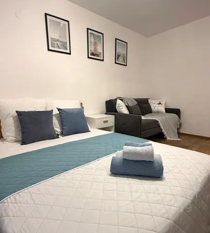 Спальные места: удобная 2-сп кровать и раскладной 2-сп диван. Квартира подходит для проживания 4 человек (2 вз и 2 ребенка).