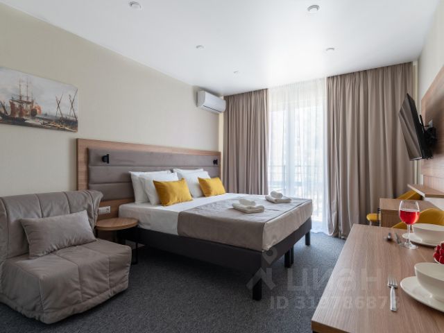 Студия на ул. Каспийская 68 , 33 квм. находится в Сириус, в пешей доступности от ЖД станции Олимпийский Парк, а также олимпийской набережной и спортивных объектов. - от аэропорта 8, 3 км (15 мин. на машине); - от ЖД станции Олимпийский парк 2км (15 мин пешком, 5 мин. на машине); - от ЖД вокзала Адлер 9, 2 км (15 мин. на машине); - до моря спокойным шагом 30 минут ( 3 км); - до моря на такси 7 минут (2 км); - до цента Сочи 33 км (30-40 мин. на машине); - до Сочи парка аттракционов 4 км (8 мин. на машине). Квартира находится в новом доме, с абсолютно новым и уютным дизайнерским ремонтом. Самостоятельное заселение через CASE BOX. Предметы первой необходимости: Кондиционер Теплый пол Чистящие средства Душевая кабина Посудомоечная машина Стиральная машина Посуда и столовые приборы Фен Отопление Кухня Телевизор Wi-Fi Гель для душа Горячая вода Постельное белье Место для хранения одежды Сушилка для одежды Утюг Подключение к интернет Обеденный стол Холодильник, морозилка Чайник Микроволновая печь Плита Вытяжка Бокалы для вина Лифт Студия 33 кв. м. с балконом. Находится на 5-ом этаже 7-ми этажного дома. В доме имеется лифт. Новый дизайнерский комфортабельный ремонт, в котором учтены все необходимые детали для полноценного отдыха. Студия оборудована телевизором, большим холодильником, бесплатным Wi-fi, смарт ТВ, микроволновой печью, варочной панелью, вытяжкой, кондиционером, утюгом, стиральной машиной, посудомоечной машиной. Кровать King size размером 180*200 см, с удобным ортопедическим матрасом Relax. Постельное белье из качественного белого хлопка. Каждому гостю предоставляется: - Одно большое полотенце 70*140см - Одно среднее полотенце 50*90см - Одно полотенце для рук 30*30см - Одно полотенце для ног 50*70см - Средства для стирки - Средства для посудомоечной машины - Гель для душа/жидкое мыло - Средства личной гигиены (ватные палочки, диски, туалетная бумага) - Соль, сахар, чай Кухня оборудована всей необходимой техникой и посудой. Что доступно гостю: При проживании от 10 дней возможна бесплатная замена белья и полотенец (дата и время согласовывается с гостем). Дополнительная уборка и замена белья осуществляется за дополнительную плату. Студия находится в жилом 7ми этажном доме на 5 этаже. Из окна открывается вид на улицу Каспийская. Дорога к морю составит от 25 до 35 минут пешим шагом. Пляжи есть как платные, так и бесплатные. На балконе оборудована релакс зона, где можно отдохнуть, покушать и подышать свежим воздухом. В вечернее время открывается красивый вид на закат. В 300 метрах от дома есть продуктовый магазин, аптека, супермаркет, фруктовая и мясная лавки, столовая, пункт выдачи Озон и Валдберрис. Важная информация: Не подходит для проведения шумных вечеринок и праздников. Проживание с животными не допускается. Курение не разрешается. Студия оборудована дополнительным спальным местом для детей. Спальное место 120*190см. Сдаю 1-комнатную квартиру на Новый Год в Сочи.