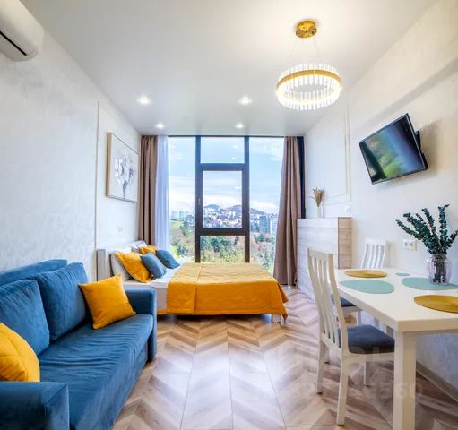 Дорогие гости!Вашему вниманию представлена уютная студия с балконом и видом на город! Студия сдается впервые от НОВОГО СОБСТВЕННИКА (пишу для того,чтобы Вас не смущало отсутствие отзывов).Ранее квартира имела положительный статус(более 110 отзывов 5,с уровнем сервиса баллов).Квартира рассчитана на 2-4 человека.При бронировании на определенное количество человек, пожалуйста, рассчитывайте свои личные габариты.