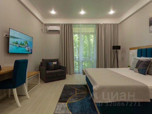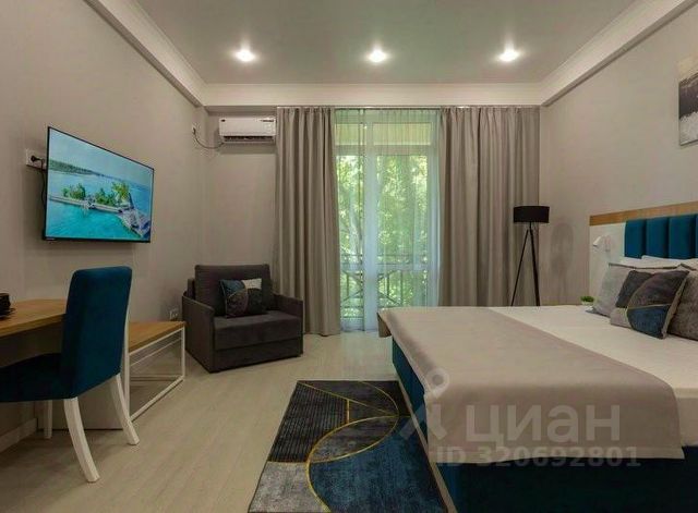 СТИЛЬНАЯ СТУДИЯ У МОРЯ В СОЧИ (АШЕ) Мечтаете снять квартиру посуточно в Сочи с видом на море и дышать свежим горным воздухом? "Терраса, где поют цикады" в микрорайоне Аше — это не просто жильё у моря, а место, в которое хочется возвращаться. Здесь утро начинается с ароматного кофе под звонкое пение цикад, а вечер заканчивается под мерцание звёзд. Даже кресло-кокон здесь словно обнимает вас, мягко приглашая оставить повседневную суету за порогом. С 2019 года сеть апартаментов "Атмосфера" обеспечивает безупречный сервис, превращая ваш отдых в незабываемое путешествие. ТЕРРИТОРИЯ КОМПЛЕКСА: • Бесплатная парковка • Закрытая охраняемая территория (вход по пропускам) • Работает доставка еды от местных кафе • Два подогреваемых бассейна (взрослый и детский) с лежаками • Детская площадка • Баскетбольная площадка ЧТО ВАС ЖДЁТ ВНУТРИ: • Зона спальни: белоснежное постельное бельё, одноразовые тапочки, гладильная доска и утюг • Зона кухни: мультиварка, холодильник, микроволновка, чайник, посуда • Санузел: полотенца, средства гигиены, фен • Техника: Wi-Fi, Smart-ТV, кондиционер • Терраса (15 м²): кресло-кокон, столик, стулья, вид на море УСЛОВИЯ ПРОЖИВАНИЯ: • Бесконтактное заселение — получаете код от замка и заселяетесь самостоятельно в любое время • Залог: возвращается в день выезда после уборки и проверки апартаментов • Для заселения требуется паспорт или водительское удостоверение • Оформляем отчётные документы • Питомцы: запрещены • Курение: запрещено • Ранний заезд/поздний выезд по договорённости за доплату • Финальная уборка — 2000 ₽, оплачивается отдельно ВАЖНО: в стоимость проживания для 12 человек включён 1 комплект белья для кровати. Дополнительный комплект для дивана — 700 руб./шт. (по запросу) РАСПОЛОЖЕНИЕ: • Микрорайон Аше, тихий зелёный район с чистым горным воздухом • До моря: 5 минут на машине, 20 минут пешком по "тропе здоровья" • До аэропорта: 107 км • До ж/д станции Лазаревское: 14 минут на автомобиле • 50 м до остановки — удобный выезд в центр Сочи ПРО ПЛЯЖ: • Чистый галечный пляж без шумных толп • Аренда инвентаря: сапы, лежаки, ватрушки и многое другое • Джипинг: захватывающие маршруты по горной местности ДОБАВЬТЕ В ИЗБРАННОЕ, ЧТОБЫ НЕ ПОТЕРЯТЬ! ВЫБИРАЙТЕ ДАТЫ И БРОНИРУЙТЕ — МОРЕ ЖДЁТ!