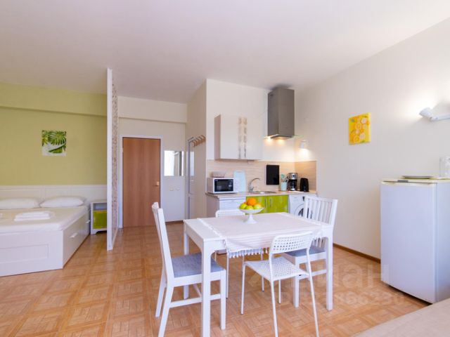 Студия+комната 29м2, для 4х гостей, улица Эпроновская, Адлерский район, город Сочи. Квартира: Диван 2х спальный два штуки, кухонный гарнитур, шкаф купе, санузел совмещен-ванна, балкон. Комплектация: Кондиционер, холодильник, телевизор, эл плита с духовым шкафом, вытяжка, свч, чайник, стиральная машина, посуда и кухонные принадлежности, постельное белье и полотенца в полном комплекте. Двор: Территория огорожена, вход по ключу через охрану, детская площадка, фонтан, лавочки, мангал, парковка свободная за территорией. Инфраструктура: До моря 3 минуты прогулочным шагом, пляж бесплатный, рядом территория пансионата "Бургаз". Супермаркет и магазины, с товарами и услугами первой необходимости, 10 мин пешком.
