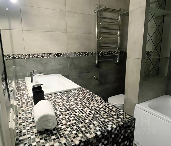 4. Совмещенный сан-узел: душ, туалет, полотенцесушитель, гигиенический душ, большое зеркало с подсветкой.