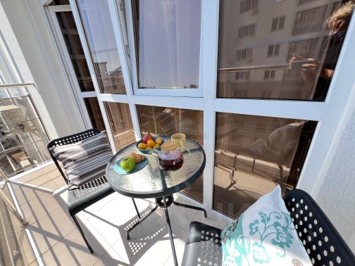 Квартира студия у моря с видом на настоящие "живые" пальмы укомплектованы: