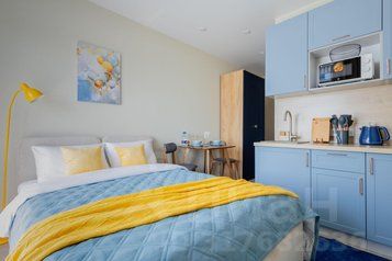 • Необходимая техника: сплит система, стиральная машина с функцией сушки, встроенный холодильник, чайник, кофемашина, микроволновка, фен, утюг и др.