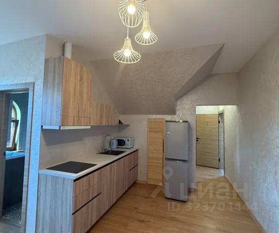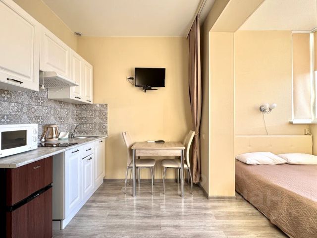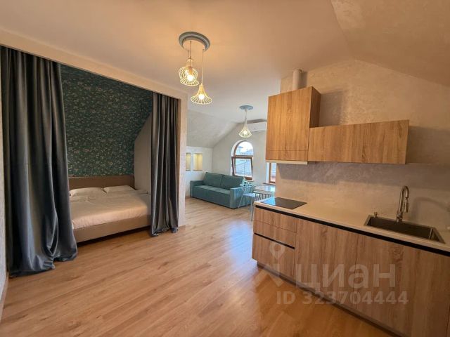 Квартира-студия выполнена в двух уровнях. На первом этаже располагается кухня-гостиная, приватная зона отдыха с удобным креслом, ванная комната с тропическим душем, шкаф-купе. Основные спальные места- кровать (160х200) и раскладной диван(140х200).