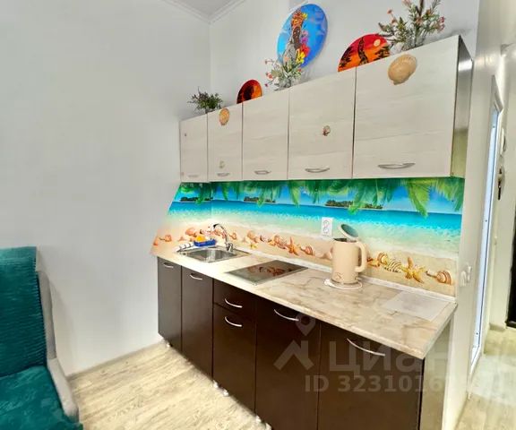 Общая площадь 19 кв.м., с балконом, выходящим во двор. Дом новый, сдан в 2019 году. Косметический ремонт в квартире сделан в мае 2024 года, все новое и свежее. Все необходимое для комфортного проживания троих человек имеется: удобная кухня со всей техникой, обеденная зона, двуспальный диван - кровать и кресло - кровать на одного человека . Смарт телевизор, микроволновка, стиральная машинка, утюг, гладильная доска, Wi-Fi, электрические тёплые полы, кондиционер, бойлер, бесплатная парковка.