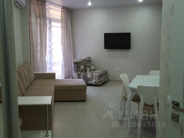 Общая площадь 19 кв.м., с балконом, выходящим во двор. Дом новый, сдан в 2019 году. Косметический ремонт в квартире сделан в мае 2024 года, все новое и свежее. Все необходимое для комфортного проживания троих человек имеется: удобная кухня со всей техникой, обеденная зона, двуспальный диван - кровать и кресло - кровать на одного человека . Смарт телевизор, микроволновка, стиральная машинка, утюг, гладильная доска, Wi-Fi, электрические тёплые полы, кондиционер, бойлер, бесплатная парковка.