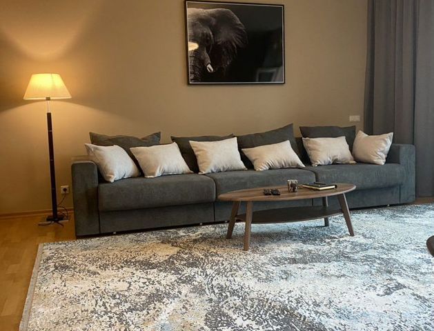 В наличии вся необходимая бытовая техника для комфортной жизни (два инвекторных кондиционера, холодильник, электроплита с духовым шкафом, микроволновка, вытяжка, чайник, утюг, фен, стиральная машина, полотенцесушитель, TV, Wi-Fi) . Большая открытая лоджия с плетеной мебелью для отдыха и наслаждения. Двуспальная кровать с ортопедические матрасом. В гостиной диван на два спальных места.