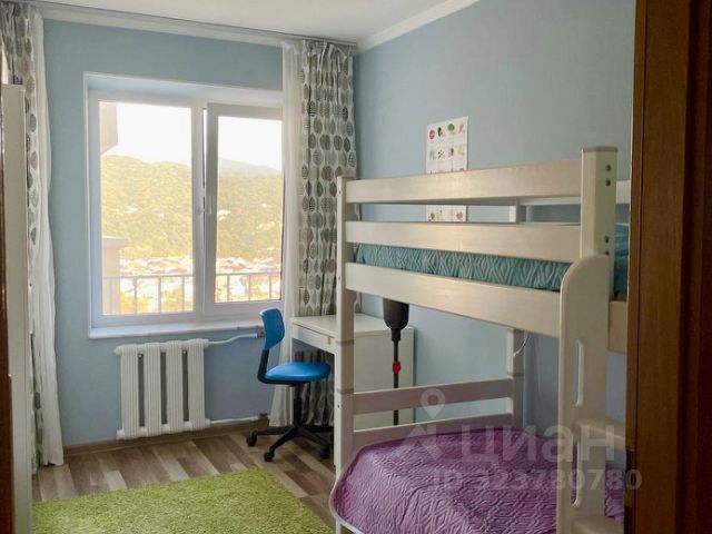 Семейные апартаменты 2х уровневая квартира Сдается до мая Гибкие условия сдачи : посуточно , от 1 месяца идеально подходят для семьи из 4-6 человек Площадь 66 м2 , с балконом На втором этаже функциональная перегородка , отдельно можно выделить спальню , при желании раздвигается и образуется большое пространство 30м2 по запросу предоставляем манеж , детскую кроватку На закрытой охраняемой территории имеются 2 бассейна (детский и взрослый) с собственными шезлонгами, детская площадка и зона отдыха, расстояние до моря составляет не более 700 метров (10 минут). До Сочи 30 мин на электричке 1На первом уровне расположена: Прихожая , кухня-гостиная , санузел , балкон с мебелью с видом на зелень 2На втором уровне расположена спальная зона , гостиная , сан узел О квартире : 1 этаж 2х местный диван, кондиционер , холодильник, телевизор, микроволновая печь, духовой шкаф , электрический чайник, варочная поверхность и вся необходимая посуда для самостоятельного приготовления еды. 2 этаж Спальня : 2х спальная кровать, сан узел , кондиционер Гостиная : 2х местный диван , 1 раскладное кресло -кровать , телевизор ЗАПРЕЩЕНО: Размещение с животными, Курение, Вечеринки
