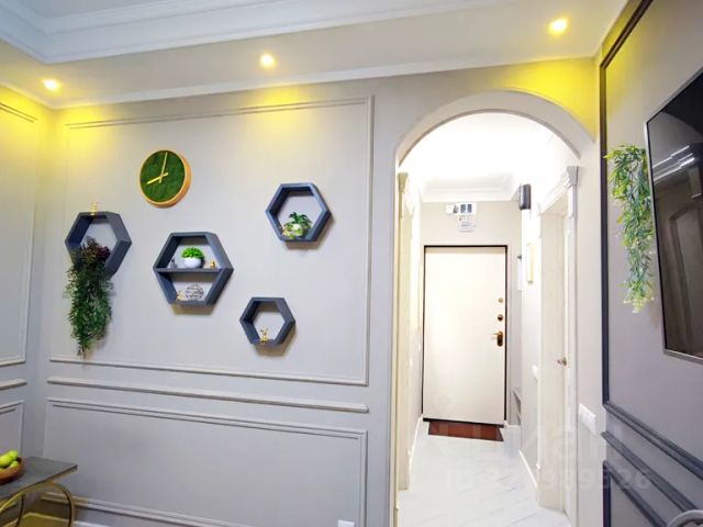 В прихожей есть шкафы для одежды, полка для обуви, зеркало.