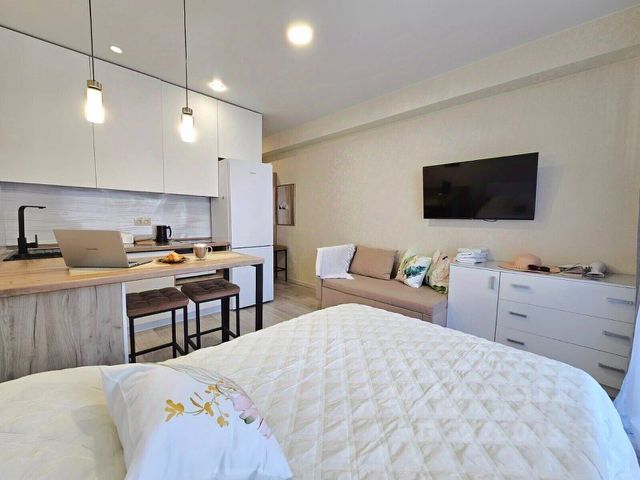 Квартира 33 квадратных метра, с новым ремонтом, мебелью и техникой, расположенная на 11 этаже ЖК Босфор. Видеонаблюдение по периметру дома, парковка, детская площадка, магазин Пятёрочка, рынок со свежими продуктами Кубани, сбербанк, аптека, кафе, мини пекарни, суши и т.д. Дом находится в пешей доступности 15 мин до моря по ровной местности. Пляж - один из самых лучших и чистых в Сочи. Красивая новая набережная, много кафе, развлечений для детей и взрослых. В 30 минутах езды расположен природный заповедник Солохаул, чайные плантации, воздушный шар, конный ипподром Светлана в 10 мин езды. Транспорт- автобус и жд вокзал в шаговой доступности. До центра Сочи - 10 мин на Ласточке или на машине. До Олимпийского парка 40мин До Красной поляны - 50 мин. В квартире имеется все необходимое для проживания : Постельное белье, полотенца, посуда для приготовления и сервировки, чайник, микроволновка, варочная панель, холодильник с морозильной камерой, фен и др. Обеденная зона на 4 человека. В наличии 2-х спальная кровать и 2-х спальный диван - кровать. Есть телевизор, wi-fi В коридоре вместительный шкаф. Имеется стиральная машинка, утюг, гладильная доска и сушилка. Совмещенный санузел с просторной ванной, раковиной, унитазом. Так же в квартире имеется балкон с видом на гору Успенку. На балконе можно провести время, наблюдая за закатом и пейзажем, открывающемся с высоты 11 этажа. На балконе есть столик и стульчики, а также освещение. Срок проживания от 5 суток. Залог 5000 (возврат при выезде) Цена: 3000/сутки - май 3500-4000/сутки- июнь 5000-5500/сутки - июль, август 4500/ сутки - сентябрь 3500/сутки - октябрь 2500/сутки ноябрь Цена зависит от количества дней проживания.