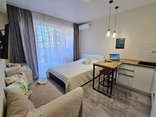 Сдается большая просторная студия с видом на море, закатная сторона, днем не жарко, вечером красиво. Для наших гостей двуспальная кровать с ортопедическим матрасом, большой раскдадной диван, очень удобный. Кухонная зона оборудована всем необходимым: индукционная плита, микроволновая печь, духовой шкаф, чайник, большой холодильник. Посуда и столовые приборы предоставляются. В ванной: полотенца, фен, душевая кабина, стиральная машина. Закрытая территория, круглосуточная охрана, видеонаблюдение. Территория красивая, большая, ухоженная. Море в 100 м от комплекса. Пляж чистый, широкий берег. Ж/д станция в 500 м от ЖК. До центра Сочи 12-15 минут. На территории спортивная и детская площадки. Функционирует бассейн (платно). Детская комната, магазины, кафе на территории. В шаговой доступности кафе, рестораны на любой вкус.