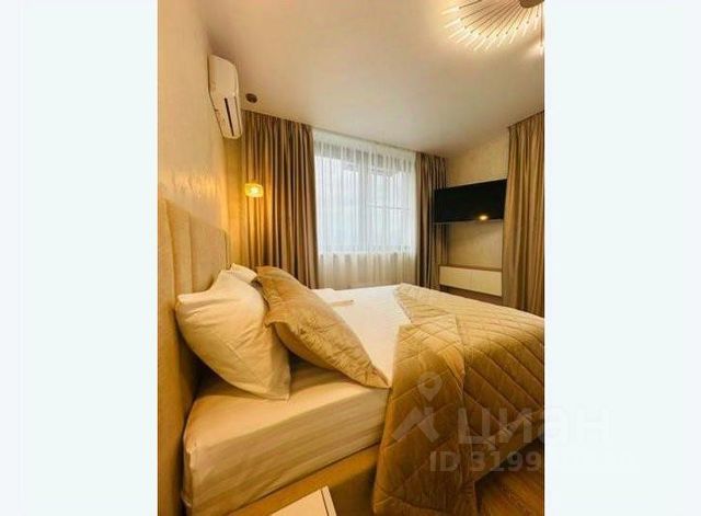 В зоне спальни установлен большой телевизор с функцией Smart-Tv и приложениями Wink, IVI, Okko. Вы сможете воспользоваться ими и посмотреть свои любимые фильмы и сериалы.