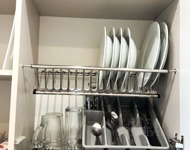 • Варочная панель, микроволновка, посуда, чайник, холодильник