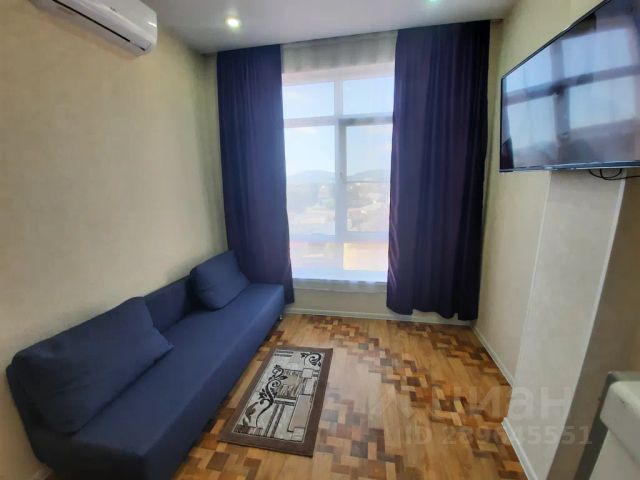 Общая площадь 19 кв.м., с балконом, выходящим во двор. Дом новый, сдан в 2019 году. Косметический ремонт в квартире сделан в мае 2024 года, все новое и свежее. Все необходимое для комфортного проживания троих человек имеется: удобная кухня со всей техникой, обеденная зона, двуспальный диван - кровать и кресло - кровать на одного человека . Смарт телевизор, микроволновка, стиральная машинка, утюг, гладильная доска, Wi-Fi, электрические тёплые полы, кондиционер, бойлер, бесплатная парковка.
