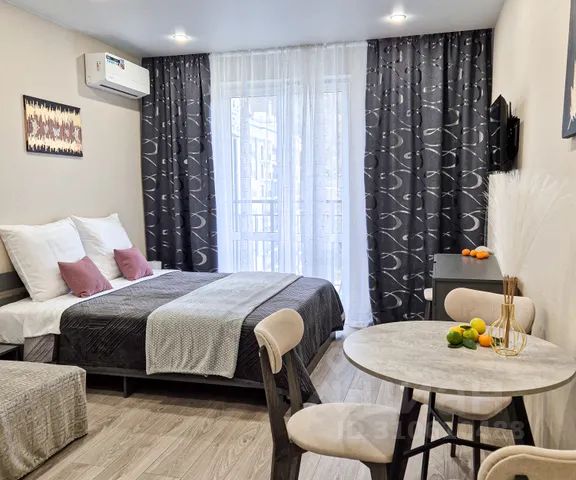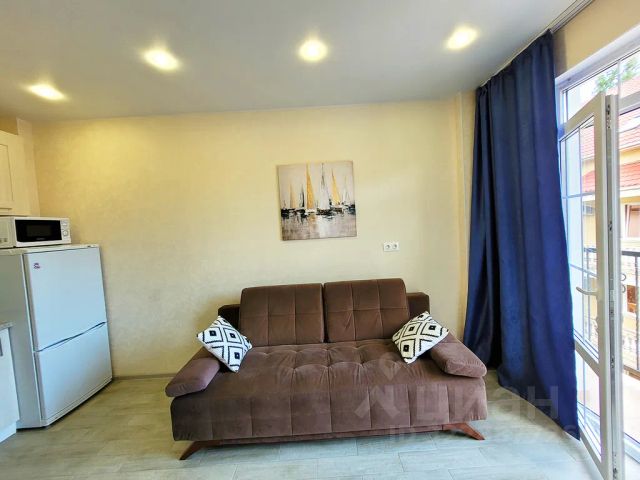 Апартаменты "ЖК Царицыно Loft 40 м2" расположены в Сочи, Адлерский район. В 9 км езды от аэропорта, в 12 км от Олимпийских объектов, в 14 км от города Сочи, в 43 км от Красной поляны. Объект находится в пешей доступности от моря 600 м, с собственным пляжем от санатория "Бургас". Пляж оборудован лежаками, волейбольными площадками, баром и прокатом. Рядом расположены: ресторан, столовая, продуктовые магазины, остановки общественного транспорта. Двухкомнатные апартаменты расположены в жилищном комплексе. Во дворе дома огороженная детская площадка, с покрытием. Во дворе дома расположен фонтан. Для гостей и жильцов жилищного комплекса на территории оборудована беседка с мангальной зоной. Работает высокоскоростной Wi-Fi. Апартаменты разделены на две комнаты стеклянной перегородкой и с закрывающимися шторами. В апартаментах керамогранитный пол, тёплые полы, стены из клинкерного кирпича, трековая система освещения, встроенная бытовая техника. Работает телевизор, кондиционер, в наличии есть игровая приставка, интерактивная колонка. Кухня, оборудованная бытовой техникой: микроволновая печь, стрирально-сушильная машина, холодильник, вытяжка, индукционная плита, электрочайник, духовой шкаф, посуда и встроенный фильтр для питьевой воды. Санузел с душевой зоной, тёплыми полами и средствами личной гигиены: полотенца, тапочки, одноразовые зубные щётки с пастой, ватные палочки и диски; гель для душа, шампунь и кондиционер для волос, фен и электрический полотенцесушитель. В апартаментах расположены два раздвижных дивана с топперами. Первый в спальне с размерами 120х200 см. Второй в гостиной с размерами 160х200 см.
