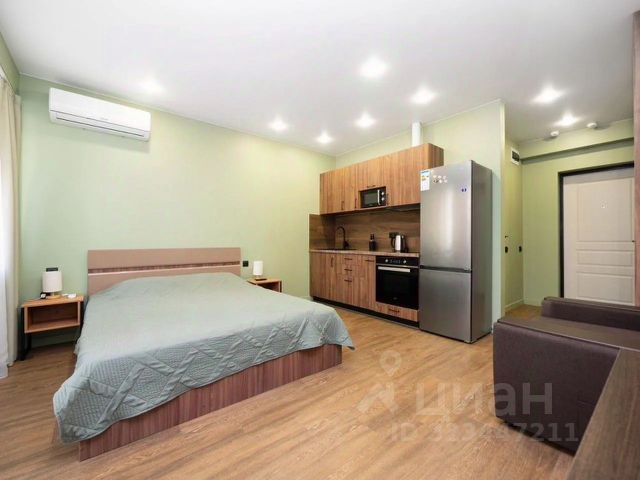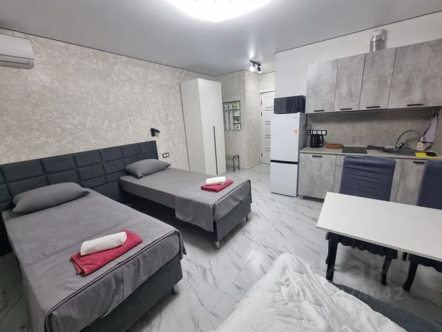 Сдаётся уютная студия с современным ремонтом в ЖК бизнес-класса! Жилой комплекс расположен в экологически чистом районе. На территории расположены 2 бассейна: взрослый и детский. Для детей есть большая детская площадка! Море в 7 минутах ходьбы по ровной местности. Рядом множество кафе, столовых, магазинов. До ж/д станции 10 минут, откуда вы можете попасть на электричку "Ласточка" и добраться до Сочи за 30 мин; Адлера за 40 мин; Олимпийского парка 50 мин; Красной Поляны 14:30 мин. До центра Сочи на авто 25-35 минут. В квартире есть всё необходимое для комфортного проживания! большая двуспальная кровать и раскладное кресло-кровать кухня, плита, вытяжка, холодильник, микроволновая печь, посуда, чайник, кухонные принадлежности. стиральная машина бойлер кондиционер Wi-Fi, Smart TV тропический душ фен гладильная доска, утюг белое постельное бельё белые полотенца шампунь, бальзам, гель для душа, одноразовые зубные щетки с пастой. Ранний заезд и поздний выезд обсуждаются индивидуально. Уборка помещений проводится перед каждым заселением.