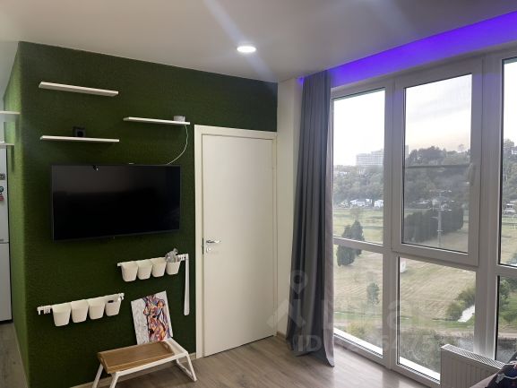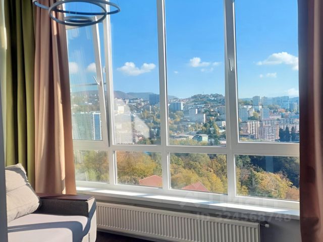 Изюминкой данной квартиры являются уникальные видовые характеристики - весь Сочи как на ладони. Особенно интересно наблюдать за городом в ночное время. Очень впечатляют новогодние салюты, заснеженные шапки гор, вспышки молний в период гроз. Также открывается вид на море в сторону Морпорта.