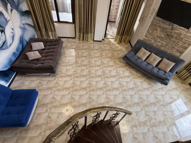 Aпapтаменты предназначены для проживания не более 5-6 человек и укомплектованы абсолютно всем необходимым для комфортного проживания: белоснежное постельное белье, по два полотенца на каждого гостя, тапочки, предметы личной гигиены, капсулы для стирки, средство для мытья посуды, таблетки для посудомойки, бумажные полотенца. В каждой комнате, в том числе и на 2-ом этаже, установлены мощные кондиционеры, в кухне-гостиной спутниковое ТВ, отличный скоростной Wi-Fi для людей работающих удаленно. Вся техника в апартаментах Haier.