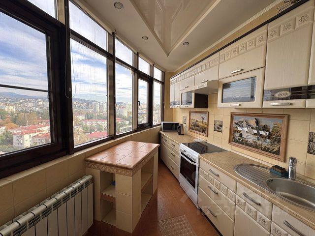 3х квартира,две раздельные спальни и просторный зал с кухней столовой. Укомплектована мебелью и всей бытовой техникой, до посудомоечной машины.Вид на город и море! Без животных и маленьких детей, коммунальные услуги дополнительно.