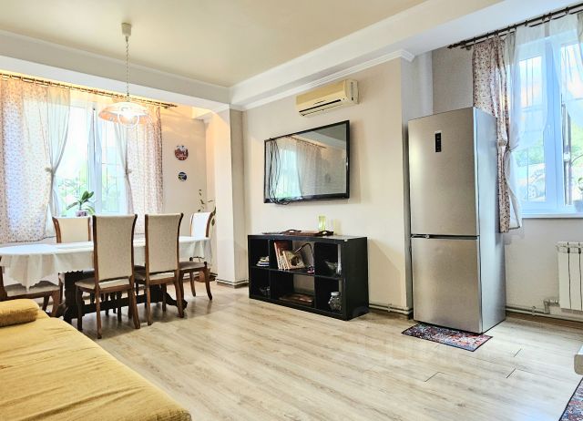 Сдаётся в аренду просторная трёхкомнатная квартира с евроремонтом в живописном посёлке Дагомыс, на Ленинградской улице. Общая площадь квартиры составляет 76 кв. м, находится на комфортном втором этаже восьмиэтажного блочного дома, построенного в 2021 году. Высота потолков — 2.7 метра, окна выходят во двор, что обеспечивает тишину и уют. В квартире есть всё необходимое для комфортного проживания. Кухня оборудована современной мебелью и техникой, включая холодильник и посудомоечную машину. В комнатах установлены кондиционер и телевизор. Одна из комнат без мебели. Ванная комната оснащена ванной и стиральной машиной. Просторная лоджия станет приятным местом для отдыха. Санузел совмещённый. Дом современный, с наземной парковкой и пандусом для удобного доступа. В доме есть пассажирский лифт, что особенно удобно для семей с маленькими детьми или пожилыми людьми. Высокоскоростной интернет позволяет всегда оставаться на связи. Рядом с домом находятся школы, детские сады и магазины, что создаёт комфортные условия для семейной жизни. Удобная транспортная доступность позволяет быстро добраться до центра города и других районов. Условия аренды: договор аренды заключается до конца мая. Квартира сдаётся без комиссий. Залог равен месячной арендной плате. Идеальное место для семьи или пары, которые ищут уютное и современное жильё. Записывайтесь на просмотр и приезжайте оценить все преимущества этой замечательной квартиры