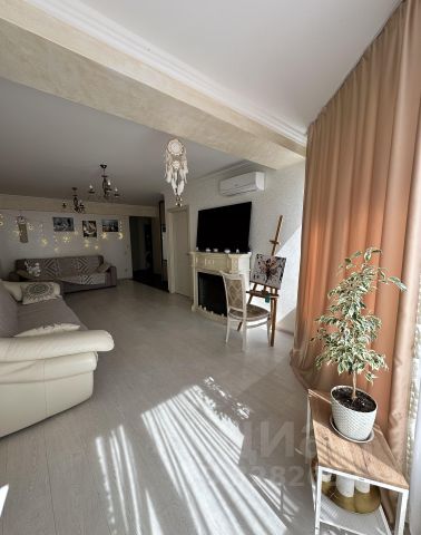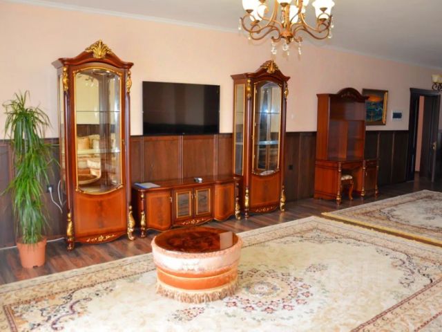 Просторная уютная кухня-гостиная с большим телевизором 65 дюймов, удобным диваном, обустроенная качественной техникой, трехступенчатым фильтром воды, посудой, текстилем, с удобным для работы светом, столовой группой, техническим шкафом.