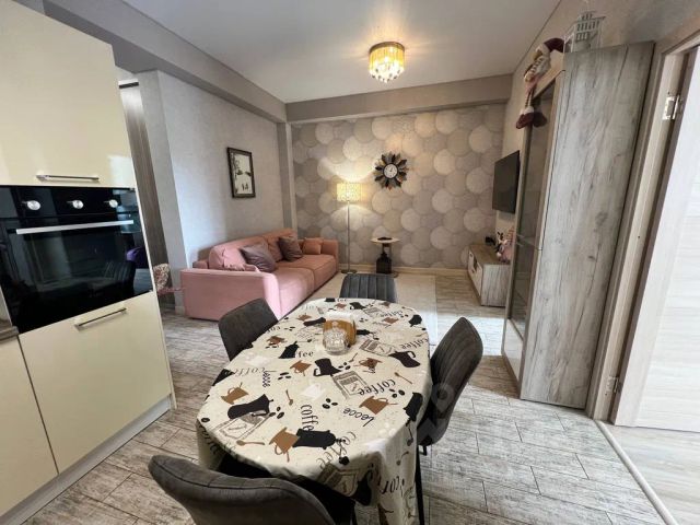Квартира оснащена: 2мя просторными диванами и 2хспальной кроватью для 4х полноценных спальных мест; wi fi и интернет; 2мя телевизорами; стационарным компьютером; 2мя инверторными кондиционерами; 2мя санузлами с унитазами, раковинами и зеркалами, душевой, гигиеническим душем, стиральной машиной, феном и предметами первой необходимости: полотенцами, мылом и туалетной бумагой; сушилкой для белья; гладильными (утюг, доска) и кухонными (посуда и столовые приборы, холодильник, газовая варочная панель, электрические духовка и чайник, раковина) принадлежностями.